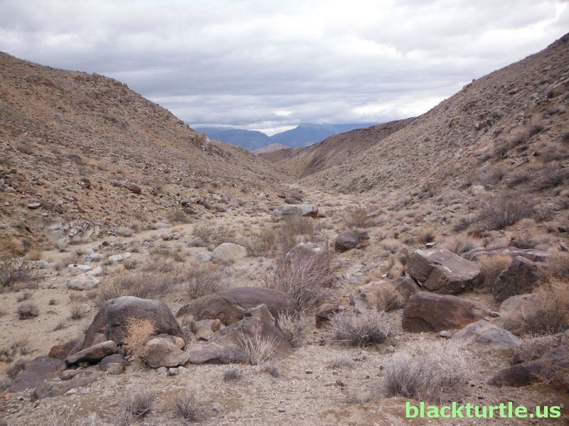 Unnamed Canyon View - A couple miles up canyon with Manly Peak covered in clouds in background.