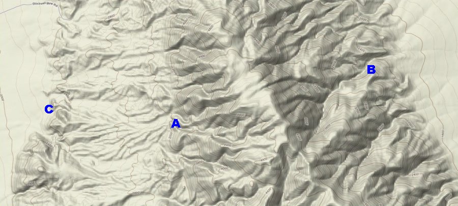 Bundy Canyon is located north of Gold Bottom Mine and east of the Ophir