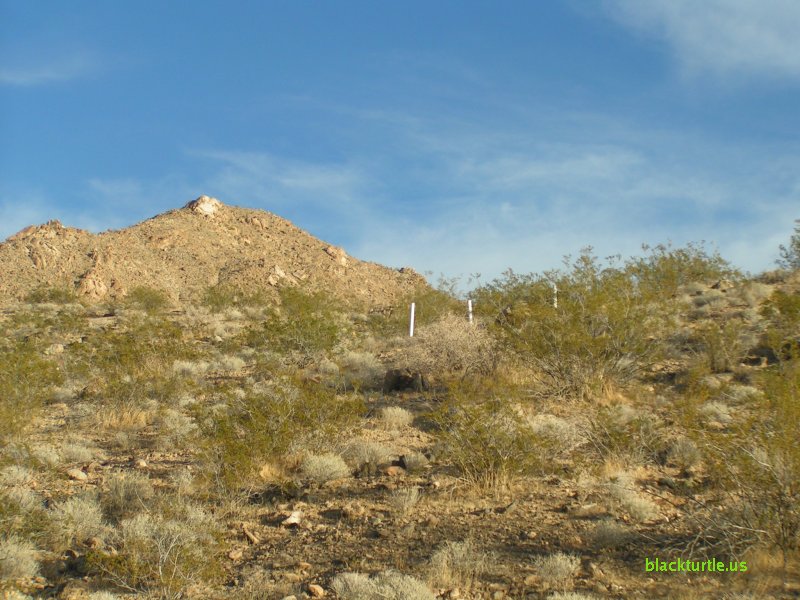 Mine Claims - White mine claim poles on hillside.