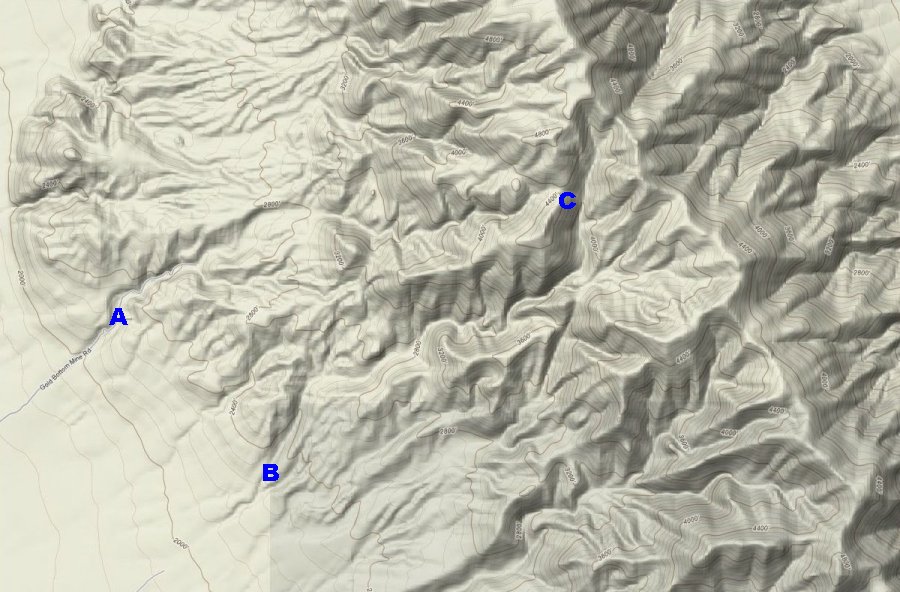 Sitting up on the mountain just to the north of Gold Bottom Canyon is this