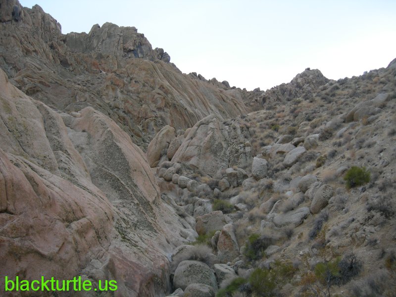 Rocky Canyon - Steep rock walls and rock formations in canyon at base of Argus Peak in upper part of Great Falls Basin.