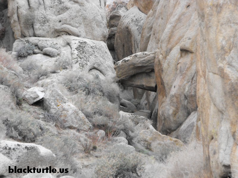 Boulder Bridge - Two large boulders wedged into gap between huge boulders.