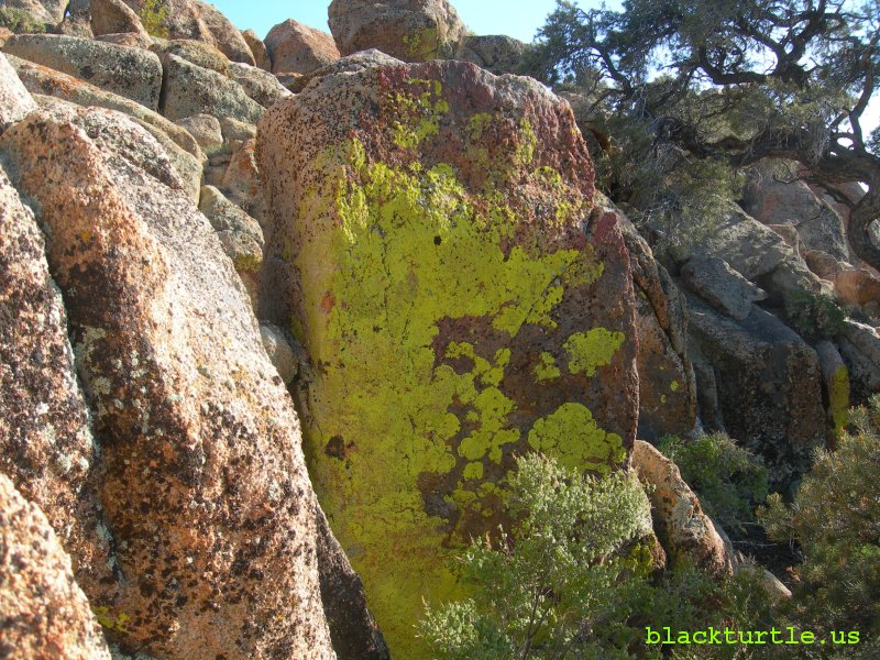 Lichen Covered Boulder - Bright greenish-yellow lichen blanketing a boulder.