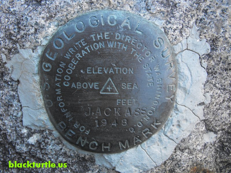 Jackass Bench Mark - USGS bench mark labeled JACKASS, 1948.