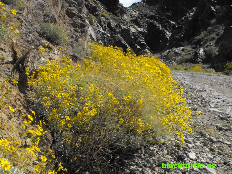 Mouth of Goler - Brittlebush by side of road at mouth of Goler Wash.
