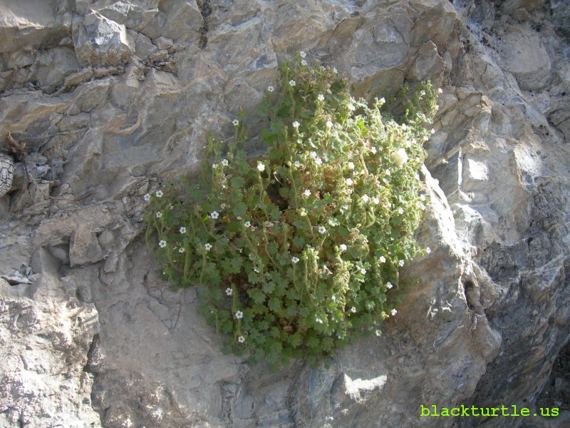 Panamint Phacelia - Panamint phacelia plant growing on rock wall.