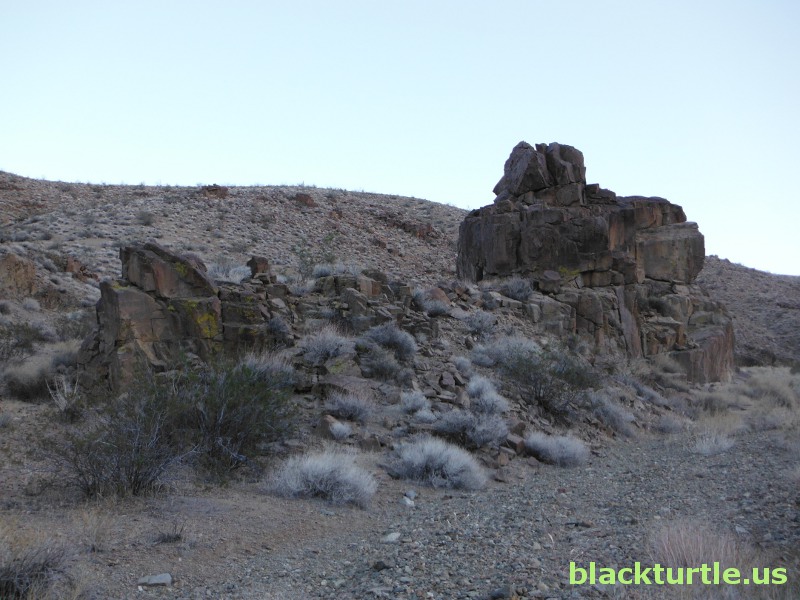 Battleship Rock - Large rock formation in middle of wash in canyon southwest of Shepherd.
