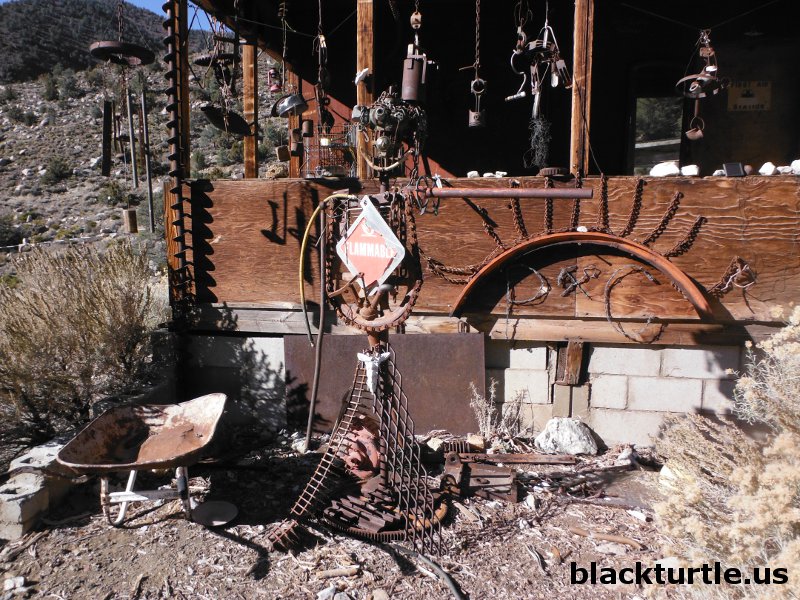 Robot Man - Interesing collection of junk in front of main cabin in Panamint City.