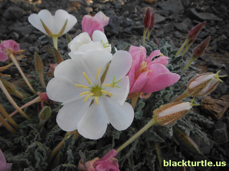 Evening Primrose #11 - Flower fully open and a couple tauntingly sticking out their stigmas.