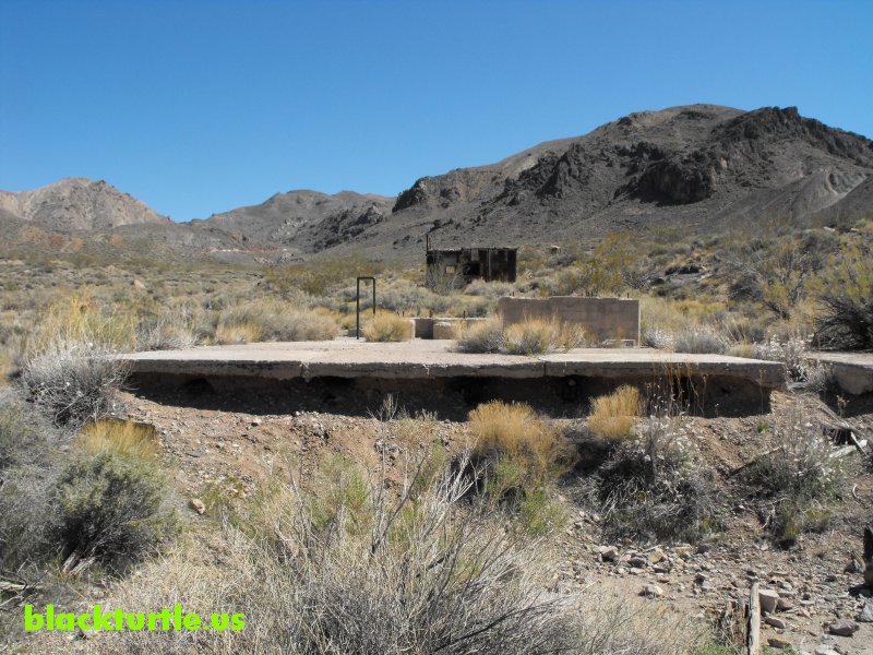 Leadfield #3 - Foundation in foreground and shack behind it.