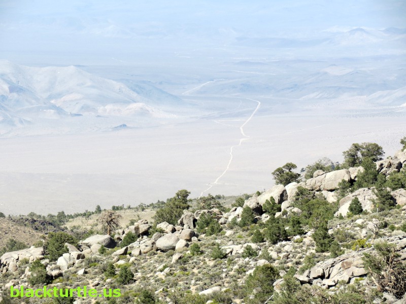 Centenial Flat - Looking down on road to Centennial Canyon on hazy day.