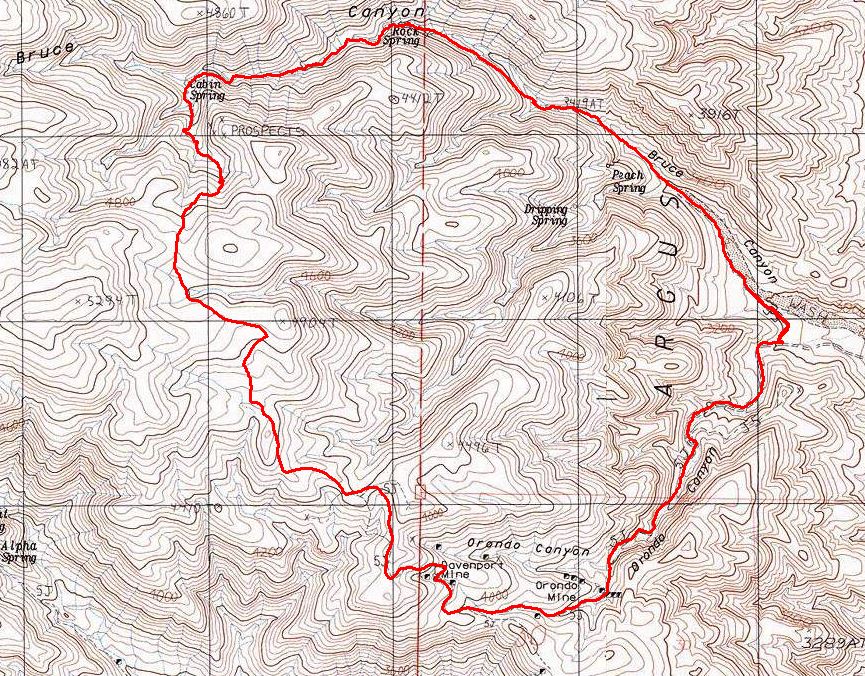 Loop Hike - Route taken up Bruce Canyon and down Orondo Canyon.