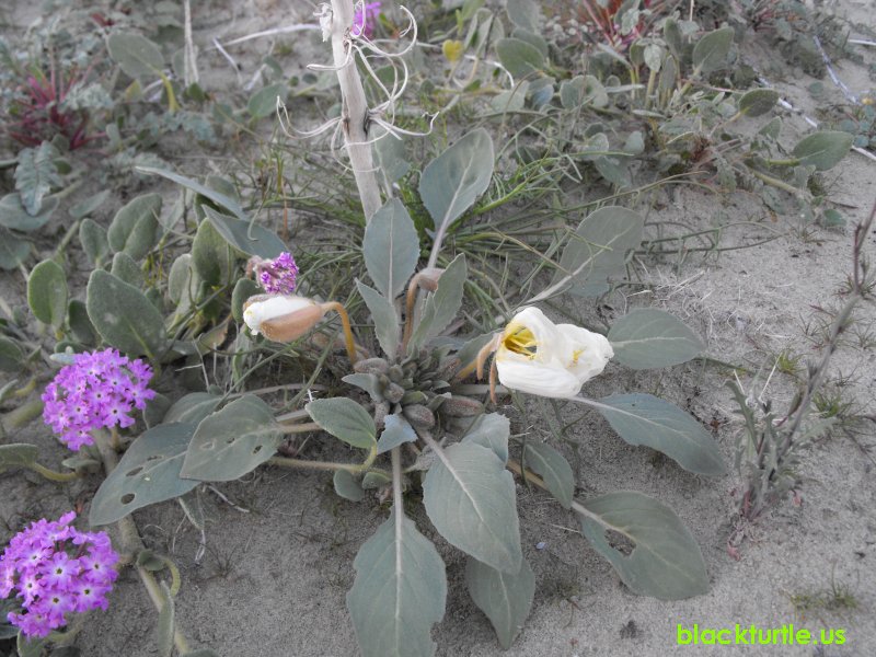Dune Evening Primrose - Wind-damaged flowers on dune evening primrose plant.