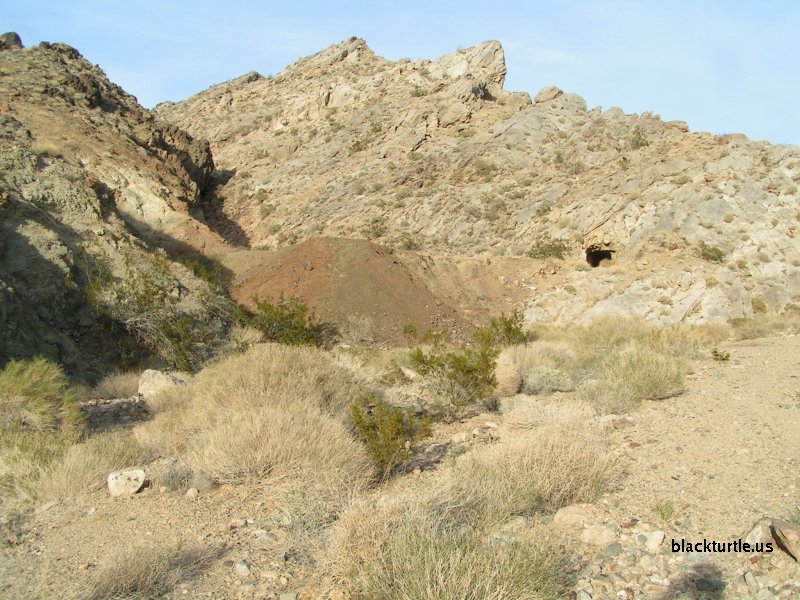 Gold Bottom Mine Site #1 - Tailings pile in lower part of canyon.
