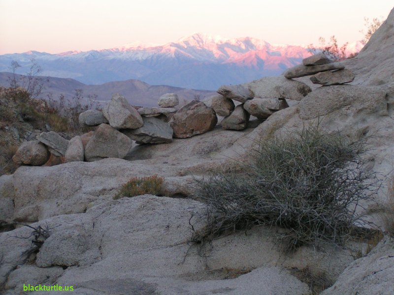 Telescope View - Stacked rocks with Telescope Peak in the background.