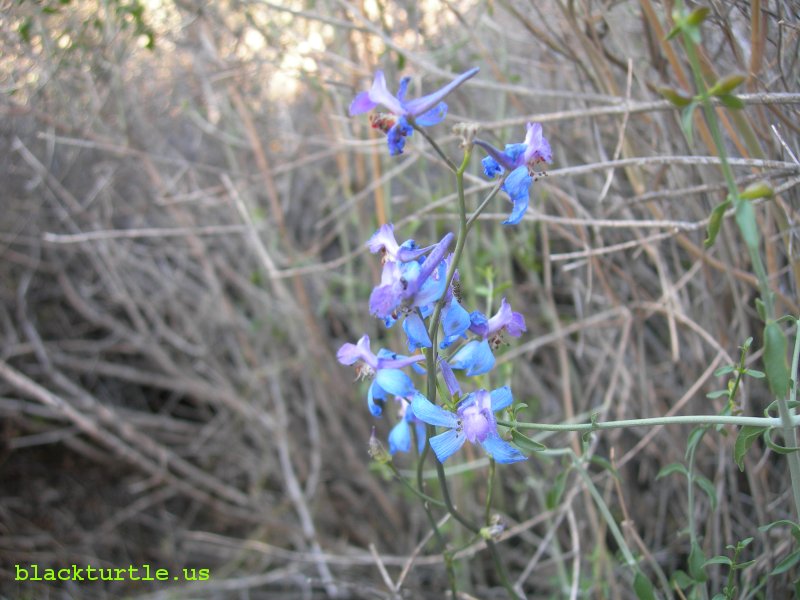 Larkspur - A larkspur plant growing amongst the bushes around the boulders.