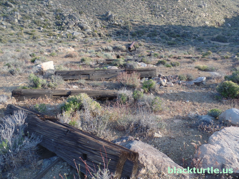 Ruins #2 - Very large timbers with large pipe at bottom of slope.
