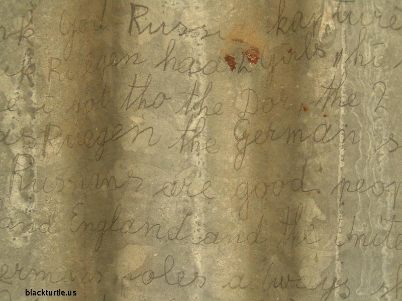 Words On Cabin #1 - Journal entry on wall of cabin.