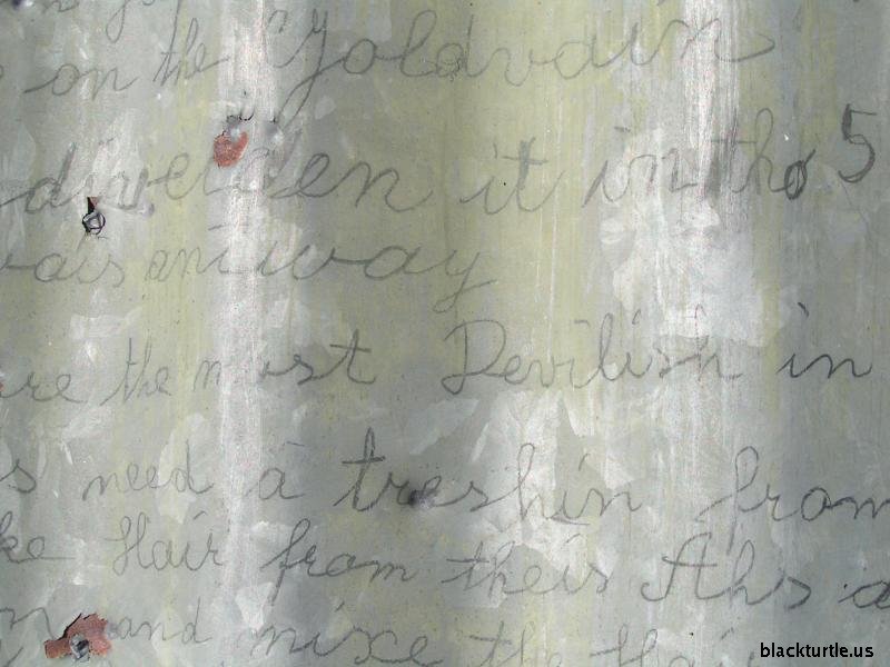 Words On Cabin #3 - More words written on corregated steal.