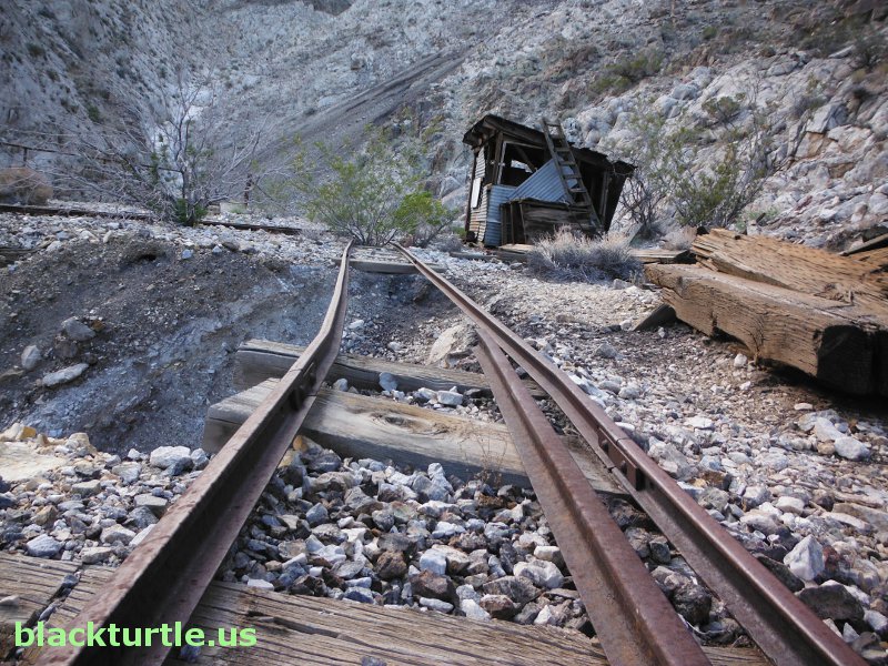 Defense Mine #5 - Tracks and shack near mine tunnel.