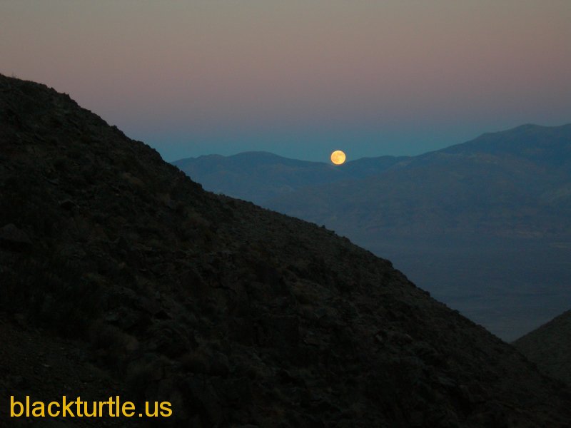 Moonrise - View looking down Thompson Canyon across Panamint Valley of the moon rising.