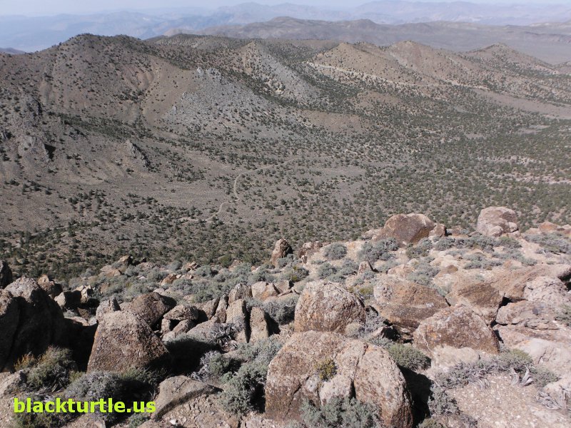 Looking Down Canyon - The road heading towards the Belmont Mine and Cerro Gordo Peak is visible in this picture.