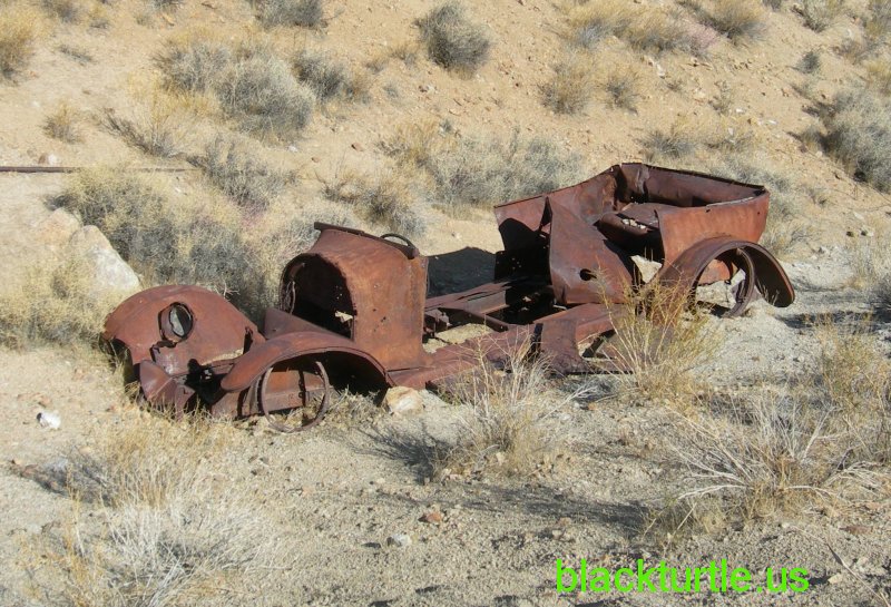 Junker - Remains of old car behind outhouse.