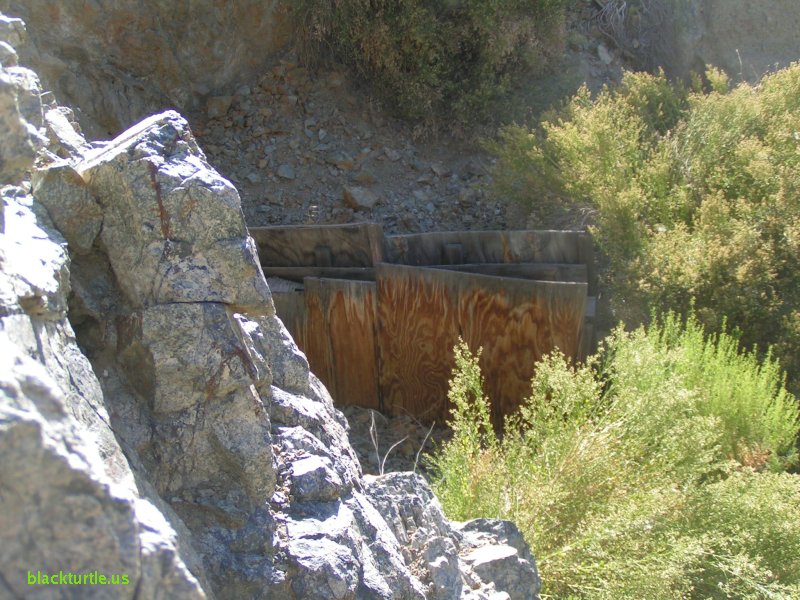 ![]() Behind Spring - Behind the lower spring is this water catching thing. Flexible black pipe is strung all the way from below the canyon mouth to this spring. There are no more remnants of any kind of road found above this spring. |