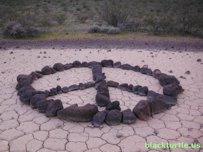 Peace Sign - Rocks arranged on playa area to form footprint of the Great American Chicken.