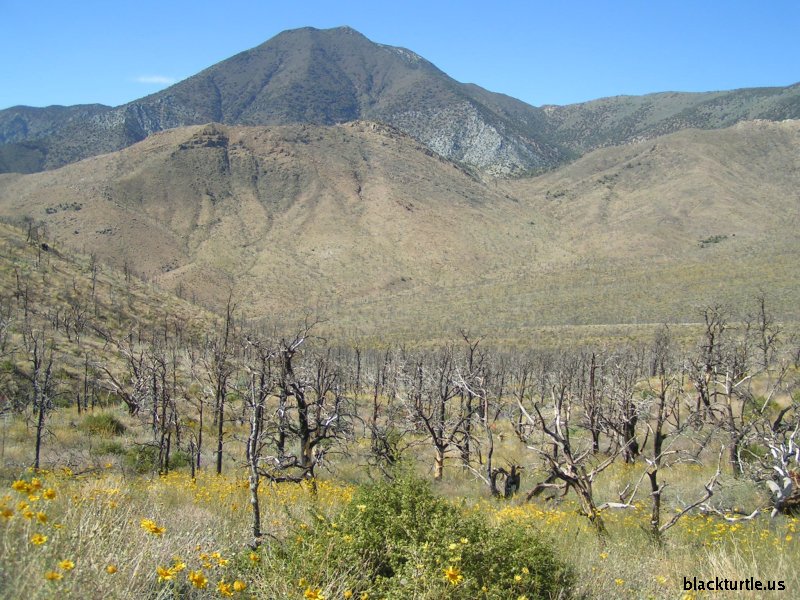 Burned Area #1 - Burnout from fire during summer of 2000 (south fork of upper Happy Canyon) with Sentinel Peak in background.