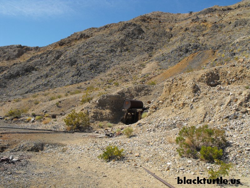 Mine Tunnel - Large barrel above mine tunnel entrance.