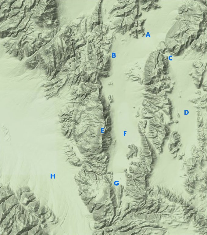 rough conditions. A road heads south from Tea Kettle Junction to Hunter