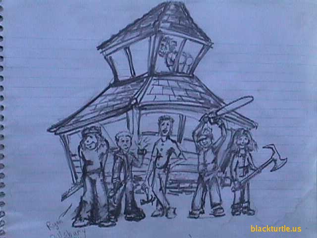 Stahl Gang Drawing - Drawing left at Stahl Lookout apparently depicting work crew which maintains the lookout.