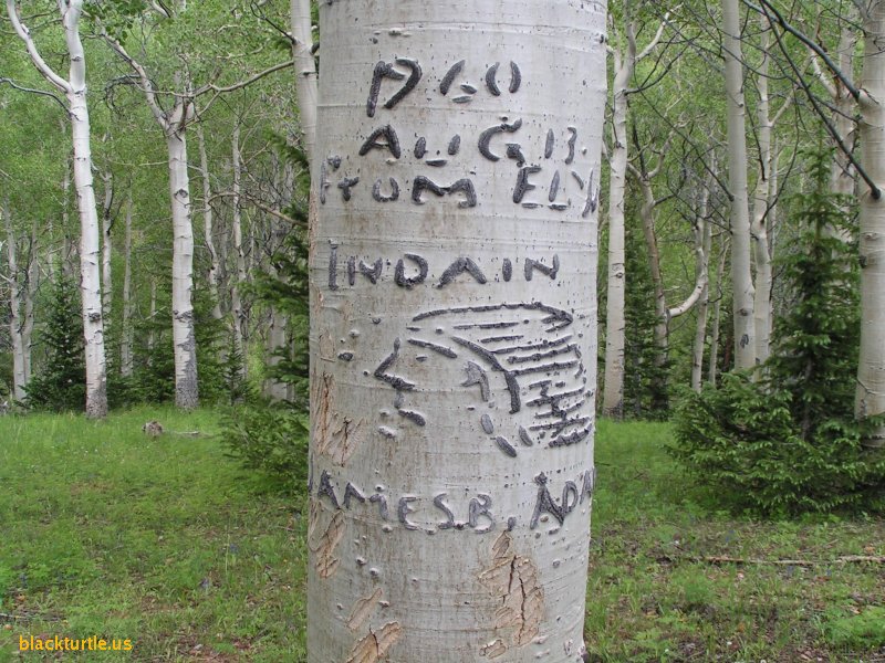 Aspen Carvings #3 - Artistically decorated aspen trunk.
