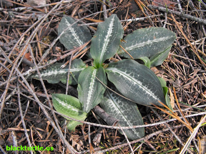 Rattlesnake Plantain - Interesting leaf patterns of Goodyera oblongifolia.