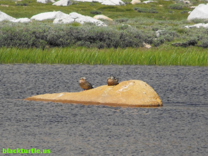 Ducks - A couple ducks on a rock in the middle of a lake.