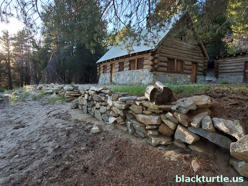 Stone Wall - Stacked stone retaining wall in front of Forest Service Cabin.
