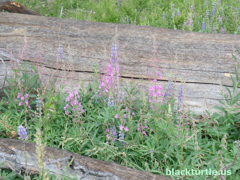 Lupine and Fireweed - Downed logs and flowers at Little Dry Meadow.