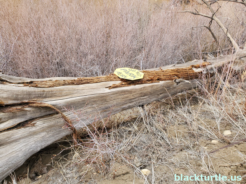 No Parking Sign - Presumably the tree was upright when the sign was attached to it.