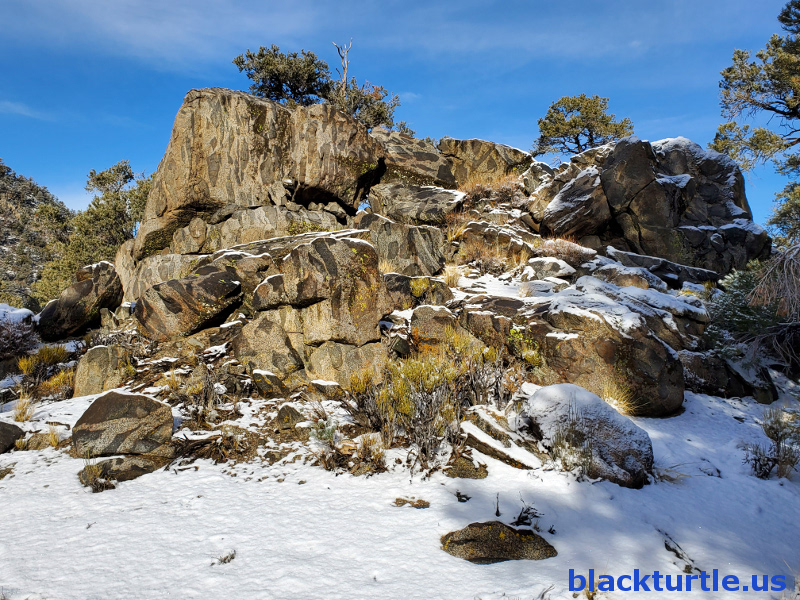Spotted Rocks - Rocks and snow at top of ridge in Sacatar area.