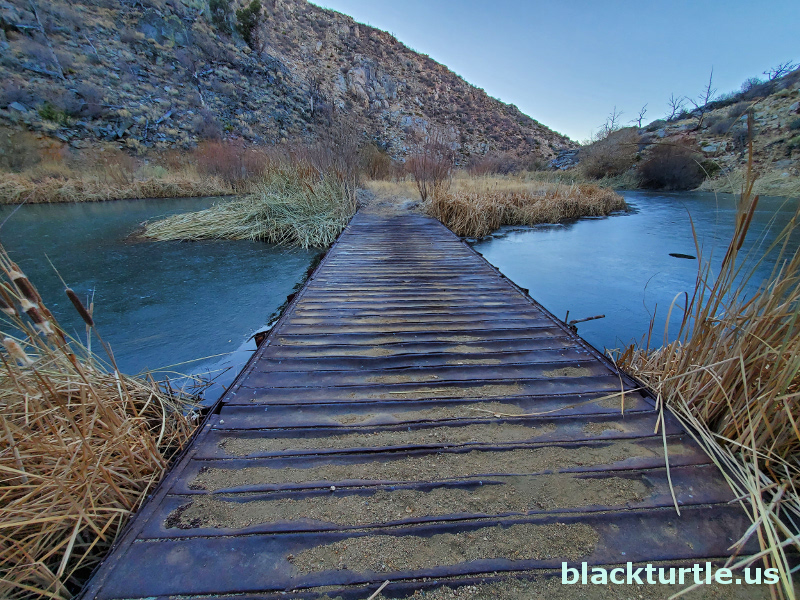 Heart Pond 01 - Metal bridge crossing small pond to island.