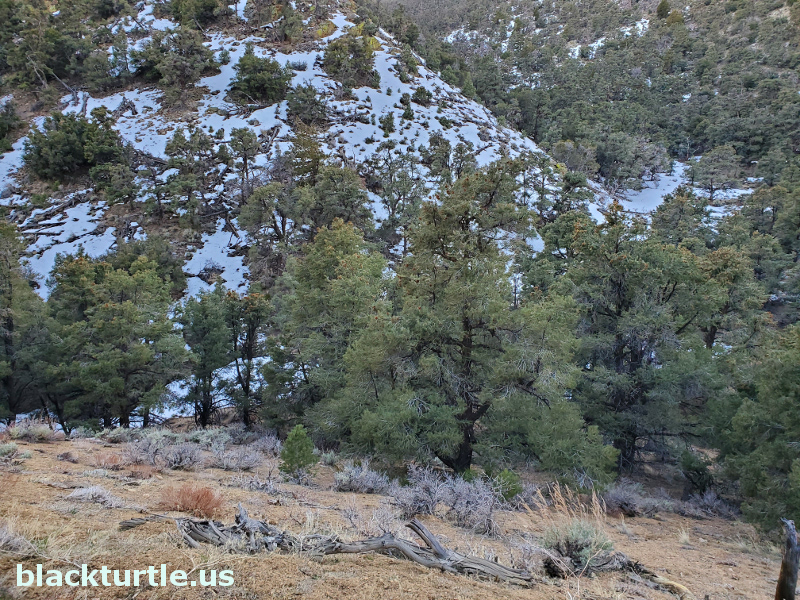 Pinyons and Snow - Snowy slopes and pinyons where trail crosses into top of canyon.
