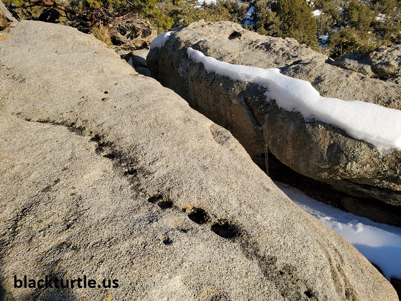 Icicle In Rock - Icicle hanging in crevice between two rocks.