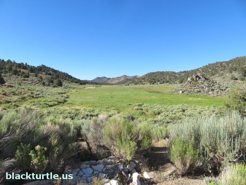Scodie Meadow - Looking up from bottom of meadow from ruins of ranch.