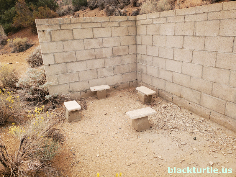 Scodie Ruins 04 - Concrete items used as stools arranged in a circle.