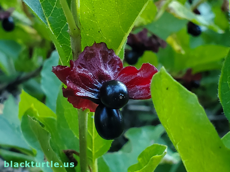Twinberry - Lonicera involucrata of the Honeysuckle Family. Inedible.